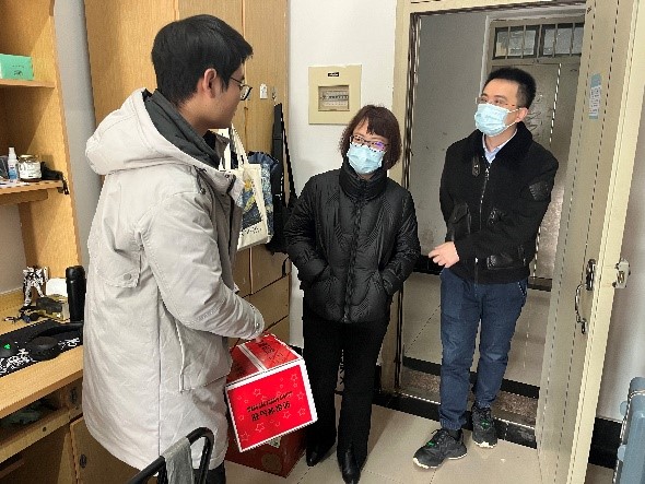 为贯彻落实学校“关于进一步推进党政干部和教工党员三联系工作”的要求,宣传党和国家有关高校家庭经济困难生资助政策,深入了解困难学生的生活和学习状况。12月12日,由环境学院党委书记狄瑞波和环境学院院长汪美贞牵头、与环境学院学办主任丁汀、辅导员刘洋和姚苗莎到学生生活区进行走访慰问。